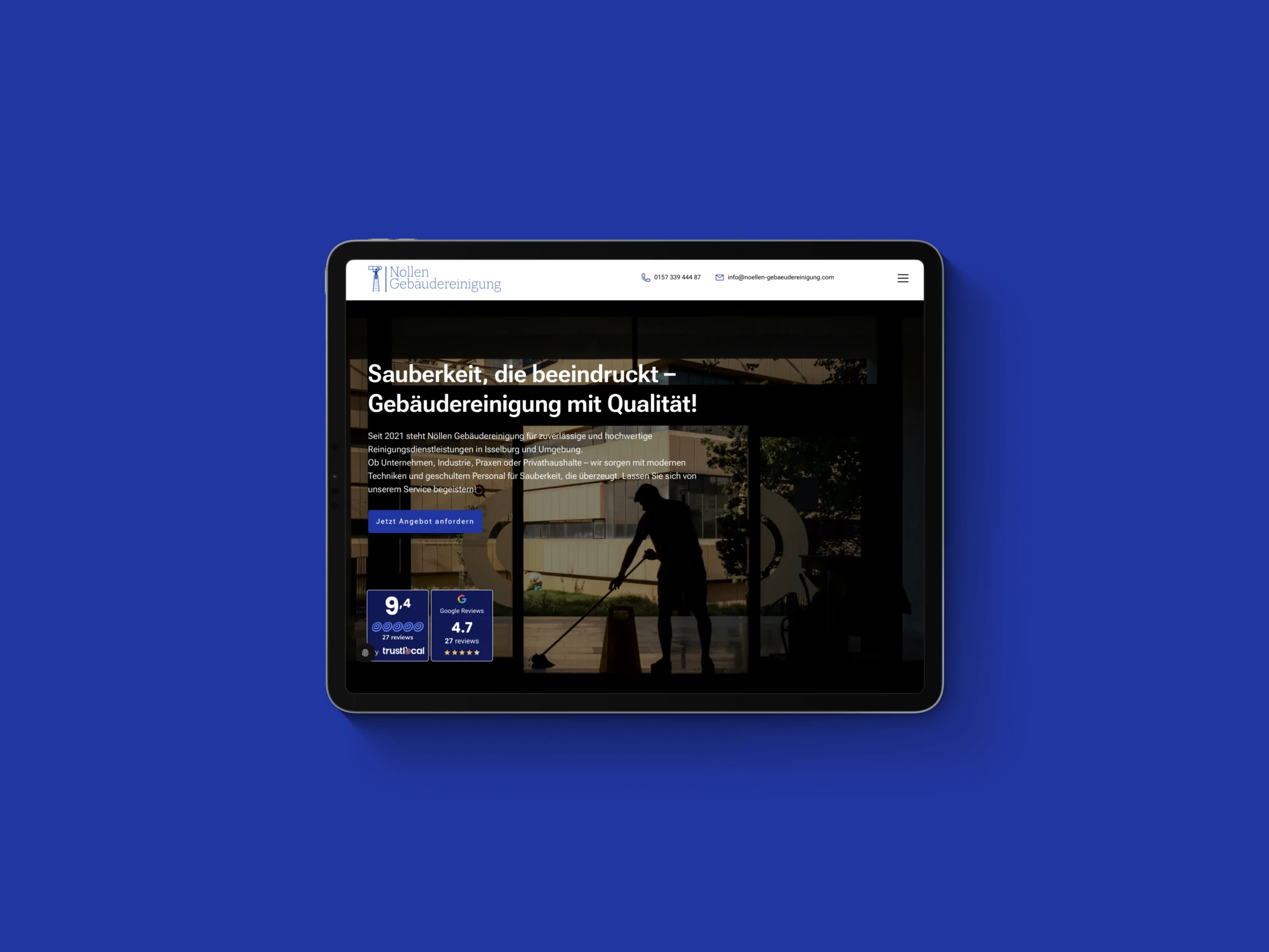 Nöllen Gebäudereinigung steht seit 2021 in Isselburg und Umgebung für professionelle Reinigungsdienstleistungen. Das Unternehmen bietet ein breites Spektrum – von Glas- und Fensterreinigung über Teppich- und Bauendreinigung bis hin zur Dachrinnen- sowie Solar- und Photovoltaikreinigung. Die Herausforderung: Das Angebot sollte online klar, modern und schnell verständlich präsentiert werden – inklusive einer starken Basis für bessere Google-Sichtbarkeit.
